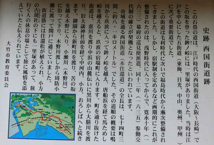 四十八坂、石畳の道、残念さん、三県一望の地 曇り空から昼から雨の街道でした。