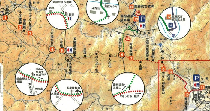 大久保長安の指揮の下に行われました。ここは大森から三里、やなしおの道の