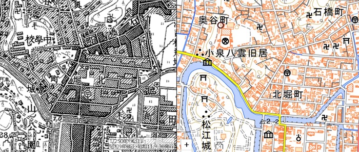 旧松江一中→武家屋敷→宇賀橋→北惣門橋→
