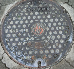 カープマンホールは、丸型ではなく四角いマンホールが使われています。 これは電線共同溝のマンホール。広島市は将来的に電線類を地中化する 計画をすすめています。 電線共同溝のマンホールでデザインマンホールを設置するのは広島では ここが初めて。 さらに、政令指定都市でみても広島での設置が初となっています。 |
