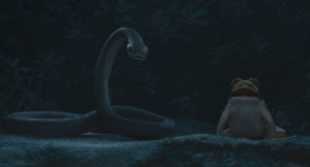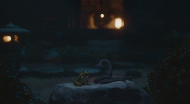 池の蛙が蛇に狙われていた場面で、八雲が自分の食べていた肉を蛇に与え、