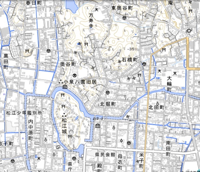 松江の重ね地図 江戸時代、明治〜昭和〜現在の地図を重ねて閲覧